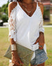 Off-The-Shoulder Lace Solid Color T-Shirt