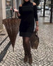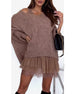 Off-Shoulder Loose Jumper & Lace Hem Dress