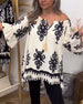 SPECIFICATIONS Top Type: Blouses Style: Casual Material: Cotton Blends Occasion: Daily Neckline: Off Shoulder Pattern Type: Print Sleeve Length: 3/4 Sleeve Fit Type: Regular Season: Spring,Summer Package Includes: 1 x Blouse SIZE TABLE Size Length Bust Sleeves CM INCH CM INCH CM INCH S 61 24.02 118 46.46 53 20.87 M 62.5 24.61 123 ...