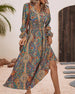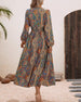 SPECIFICATIONS Style: Vacation, Elegant Material: Spandex, Polyester Dress Type: A-Line Dress Length: Maxi Neckline: V neck_V Pattern Type: Paisley Sleeve Type: Lantern Sleeve Sleeve Length: Long Sleeve Details: Shirred Fit Type: Regular Season: Spring, Summer, Fall Occasion: Daily, Vacation Package Includes: 1 x Dress SIZE TABLE ...