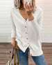 SPECIFICATIONS Top Type: Blouses Style: Casual Material: Cotton Occasion: Daily Neckline: V neck_V Pattern Type: Solid Color Sleeve Type: Regular sleeve Sleeve Length: Long Sleeve Fit Type: Regular Season: Spring,Summer Details: Buttons,Shirred Package Includes: 1 x Blouse SIZE TABLE Size Bust Sleeves Length CM INCH CM INCH CM INC...