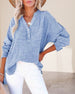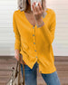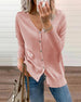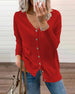 Plain Knitted Top With Button Closure And V-Neck For Women