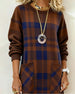 SPECIFICATIONS Style: Casual Material: Cotton Blends Dress Type: Shift dress Dress Length: Midi Neckline: Round Neck Pattern Type: Plaid Sleeve Type: Dropped shoulder Sleeve Length: Long Sleeve Details: Pocket Fit Type: Regular Season: Fall,Winter Occasion: Daily Package Includes: 1 x Dress SIZE TABLE Size Bust Length CM INCH CM I...