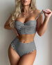 SPECIFICATIONS Style: Vacation Material: Spandex, Polyester Occasion: Vacation Neckline: Spaghetti Straps Pattern Type: Plaid Sleeve Length: Sleeveless Top Type: Bikini Bra Type: Wireless Bra Bottom Type: High Cut Fit Type: Regular Season: Summer Details: Shirred Package Includes: 1 x Bikini SIZE TABLE Size Bust Waist Hip ...