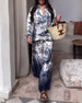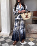 SPECIFICATIONS Style: Casual Category: Sets Material: Cotton Blends Pattern Type: Print Neckline: V neck_V Sleeve Type: Lantern Sleeve Sleeve Length: Long Sleeve Pants Type: Wide Leg Pants Length: Long Waist Type: Mid Waist Fit Type: Regular Season: Spring,Summer,Fall Occasion: Daily Package Includes: 1 x Top, 1 x Pants SIZE TABLE Size ...
