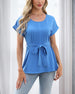 SPECIFICATIONS Top Type: Blouses Style: Casual Material: Polyester Occasion: Daily Neckline: Round Neck Pattern Type: Solid Color Sleeve Length: Short Sleeve Fit Type: Regular Season: Spring,Summer Details: Lace Up,Shirred Package Includes: 1 x Blouse SIZE TABLE Size Bust Length CM INCH CM INCH S 97 38.19 68 26.77 M 102 40.1...