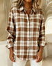 SPECIFICATIONS Top Type: Blouses Style: Casual Material: Cotton Blends Occasion: Daily Neckline: Lapel Pattern Type: Plaid Sleeve Type: Regular sleeve Sleeve Length: Long Sleeve Fit Type: Regular Season: Spring, Summer, Fall Details: Buttons Package Includes: 1 x Blouse SIZE TABLE Size Bust Length Shoulder Sleeve CM INCH CM INCH CM IN...
