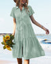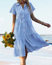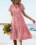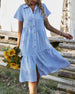 SPECIFICATIONS Style: Casual Material: Polyester Dress Type: Shirt Dress Length: Midi Neckline: Lapel Pattern Type: Plaid Sleeve Type: Regular sleeve Sleeve Length: Short Sleeve Details: Buttons Fit Type: Regular Season: Spring, Summer, Fall Occasion: Daily Package Includes: 1 x Dress SIZE TABLE Size Bust Length Sleeve Leng...