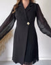 SPECIFICATIONS Style: Elegant, Business Material: 95% polyester, 5% spandex Dress Type: Shift dress Dress Length: Knee Length Neckline: Round Neck Pattern Type: Solid Color Sleeve Type: Regular sleeve Sleeve Length: Long Sleeve Details: Patchwork, See-through Fit Type: Regular Season: Spring, Fall, Winter Occasion: Daily, Work Package Include...