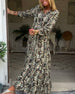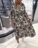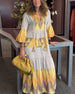 SPECIFICATIONS Style: Casual, Vacation Material: Cotton Blends Dress Type: A-Line Dress Length: Maxi Neckline: V neck_V Pattern Type: Print Sleeve Type: Flare Sleeve Sleeve Length: Long Sleeve Details: Buttons, Shirred Fit Type: Regular Season: Spring, Summer Occasion: Daily, Vacation Package Includes: 1 x Dress SIZE TABLE Size B...