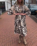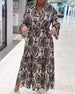 SPECIFICATIONS Style: Casual Material: Cotton Blends Dress Type: A-Line Dress Length: Midi Neckline: Lapel Pattern Type: Print Sleeve Type: Regular sleeve Sleeve Length: 3/4 Sleeve Details: Lace Up, Buttons, Slit Fit Type: Regular Season: Summer Occasion: Daily, Vacation Package Includes: 1 x Dress (With Belt) SIZE TABLE Size Bust L...