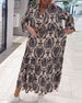 SPECIFICATIONS Style: Casual, Chic Material: Cotton Blends Dress Type: A-Line Dress Length: Maxi Neckline: V neck_V Pattern Type: Print Sleeve Type: Flare Sleeve Sleeve Length: 3/4 Sleeve Details: Buttons, Shirred Fit Type: Regular Season: Spring, Summer Occasion: Daily, Vacation Package Includes: 1 x Dress SIZE TABLE Size Bust L...