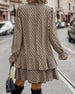 SPECIFICATIONS Style: Casual Material: Cotton Blends Dress Type: Shift dress Dress Length: Midi Neckline: Round Neck Pattern Type: Figure Sleeve Type: Dropped shoulder Sleeve Length: Long Sleeve Details: Shirred Fit Type: Regular Season: Fall, Winter Occasion: Daily Package Includes: 1 x Dress SIZE TABLE Size Bust Length CM INCH CM IN...