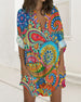 SPECIFICATIONS Style: Casual Material: Cotton Blends Dress Type: Shift dress Dress Length: Knee Length Neckline: Round Neck Pattern Type: Print Sleeve Type: Bat sleeve Sleeve Length: 3/4 Sleeve Fit Type: Regular Season: Spring,Summer Occasion: Daily Package Includes: 1 x Dress SIZE TABLE Size Bust Length CM INCH CM INCH S 97 38.1...