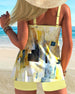 SPECIFICATIONS Style: Vacation Material: 15% Spandex,85% Polyester Occasion: Vacation Neckline: U Neck_U Pattern Type: Print Sleeve Length: Sleeveless Top Type: Tankini Bra Type: Wireless Bra Bottom Type: Shorts Fit Type: Skinny Details: Backless Package Includes: 1 x Tankini SIZE TABLE Size Bust Waist Hip Under bust CM INCH CM INCH CM INC...