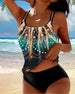 SPECIFICATIONS Style: Vacation Material: 15% Spandex,85% Polyester Occasion: Vacation Neckline: Spaghetti Straps Pattern Type: Print Top Type: Tankini Bra Type: Wireless Bra Bottom Type: Natural Fit Type: Skinny Season: Summer Details: Ruffle Package Includes: 1 x Tankini SIZE TABLE Size Bust Waist Hip Under bust CM INCH CM INCH CM INCH CM...