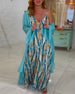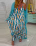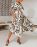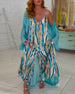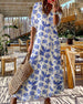 SPECIFICATIONS Style: Casual, Vacation Material: 95% Polyester + 5% Spandex, Dress Type: A-Line Dress Length: Maxi Neckline: V neck_V Pattern Type: Print Sleeve Type: Flare Sleeve Sleeve Length: 3/4 Sleeve Fit Type: Regular Season: Spring, Summer, Fall Occasion: Daily, Vacation Package Includes: 1 x Dress SIZE TABLE Size Bust Length Sl...