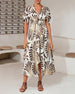 SPECIFICATIONS Style: Elegant Material: Cotton Blends Dress Type: A-Line Dress Length: Midi Neckline: V neck_V Pattern Type: Print Sleeve Type: Slit Sleeves Sleeve Length: Short Sleeve Details: Patchwork Fit Type: Regular Season: Spring,Summer,Fall Occasion: Daily Package Includes: 1 x Dress SIZE TABLE Size Bust Length CM INCH ...
