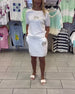 SPECIFICATIONS Style: Casual Top Type: Blouses Category: Sets Material: Cotton Blends Pattern Type: Letter Neckline: Round Neck Sleeve Type: Regular sleeve Sleeve Length: Short Sleeve Fit Type: Regular Season: Spring,Summer Details: Pocket Occasion: Daily Package Includes: 1 x Blouse, 1 x Skirt SIZE TABLE Size Bust Top Length Waist...