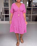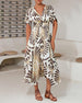 SPECIFICATIONS Style: Casual, Vacation Material: Cotton Blends Dress Type: A-Line Dress Length: Knee Length Neckline: V neck_V Pattern Type: Print Sleeve Type: Regular sleeve Sleeve Length: Short Sleeve Details: Tassel, Drawstring Fit Type: Regular Season: Spring, Summer, Fall Occasion: Daily, Vacation Package Includes: 1 x Dress SIZE TABLE...