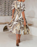 SPECIFICATIONS Style: Casual, Vacation Material: Polyester Dress Type: A-Line Dress Length: Maxi Neckline: V neck_V Pattern Type: Print Sleeve Type: Lantern Sleeve Details: Drawstring Fit Type: Regular Season: Spring, Summer, Fall Occasion: Daily, Vacation Package Includes: 1 x Dress SIZE TABLE Size Bust Length Sleeve lengt...