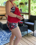 SPECIFICATIONS Style: Vacation Material: 15% Spandex,85% Polyester Occasion: Vacation Neckline: Spaghetti Straps Pattern Type: Print Sleeve Length: Sleeveless Top Type: Tankini Bra Type: Wireless Bra Bottom Type: Shorts Fit Type: Regular Season: Spring,Summer Details: Lace Up,Drawstring Package Includes: 1 x Tankini SIZE TABLE Size Bust Wais...