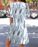 SPECIFICATIONS Style: Casual Material: 5% Spandex, 95% Polyester Dress Type: A-Line Dress Length: Knee Length Neckline: V neck_V Pattern Type: Print Sleeve Type: Flare Sleeve Sleeve Length: 3/4 Sleeve Details: Shirred Fit Type: Regular Season: Summer Occasion: Daily, Vacation Package Includes: 1 x Dress SIZE TABLE Size Bust ...