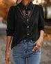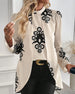 SPECIFICATIONS Top Type: Shirt Style: Casual, Elegant Material: 5% Spandex,95% Poliester Occasion: Daily Neckline: V neck_V Pattern Type: Print Sleeve Type: Puff Sleeve Sleeve Length: Nine Points Sleeve Fit Type: Regular Season: Spring, Summer, Fall Details: Buttons Package Includes: 1 x Shirt SIZE TABLE Size Bust Length ...