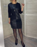 SPECIFICATIONS Style: Elegant Material: Cotton Blends, PU Leather Dress Type: Shift dress Dress Length: Above-knee Neckline: Round Neck Pattern Type: Solid Color Sleeve Type: Regular sleeve Sleeve Length: Long Sleeve Details: Patchwork Fit Type: Regular Season: Spring, Fall, Winter Occasion: Daily Package Includes: 1 x Dress SIZE TABLE ...