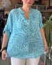 SPECIFICATIONS Top Type: Blouses Style: Casual Material: Cotton Blends Occasion: Daily Neckline: V neck_V Pattern Type: Print Sleeve Type: Regular sleeve Sleeve Length: 3/4 Sleeve Fit Type: Regular Season: Spring, Summer Details: Pocket, Buttons Package Includes: 1 x Blouse SIZE TABLE Size Bust Length CM INCH CM INCH S 95 37....
