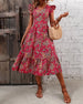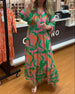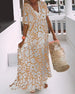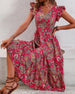 SPECIFICATIONS Style: Casual, Vacation Material: Cotton Blends Dress Type: A-Line Dress Length: Maxi Neckline: V neck_V Pattern Type: Print Sleeve Type: Regular sleeve Sleeve Length: Short Sleeve Details: Ruffle Fit Type: Regular Season: Spring, Summer, Fall Occasion: Daily, Vacation Package Includes: 1 x Dress SIZE TABLE Size ...