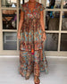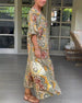 SPECIFICATIONS Style: Casual, Vacation Material: Cotton Blends Dress Type: A-Line Dress Length: Maxi Neckline: V neck_V Pattern Type: Print Sleeve Type: Flare Sleeve Sleeve Length: 3/4 Sleeve Details: Shirred Fit Type: Loose Season: Spring, Summer Occasion: Daily, Vacation Package Includes: 1 x Dress SIZE TABLE Size Bust Length...