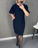 SPECIFICATIONS Style: Elegant, Party Material: 100% Polyester Dress Type: Shift dress Dress Length: Knee Length Neckline: Round Neck Pattern Type: Solid Color Sleeve Type: Puff Sleeve Sleeve Length: Short Sleeve Details: Patchwork Fit Type: Regular Season: Spring, Summer, Fall Occasion: Daily, Party Package Includes: 1 x Dress SIZE TABLE ...