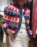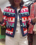 Raw edge button colorful print jacket