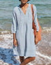 SPECIFICATIONS Style: Casual, Vacation Material: 65%Cotton, 35% Polyester Dress Type: Shift dress Dress Length: Knee Length Neckline: V neck_V Pattern Type: Solid Color Sleeve Type: Regular sleeve Sleeve Length: 3/4 Sleeve Details: Pocket, Drawstring Fit Type: Regular Season: Spring, Summer, Fall Occasion: Daily, Vacation Package Includes: 1...