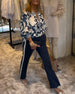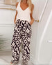 SPECIFICATIONS Style: Casual Top Type: Blouses Category: Sets Material: 100% Polyester Pattern Type: Print Neckline: V neck_V Sleeve Type: Regular sleeve Sleeve Length: Long Sleeve Pants Type: Wide Leg Pants Length: Nine Points Fit Type: Loose Season: Spring,Summer Details: Pocket Occasion: Daily Package Includes: 1 x Blouse, 1 x Pants SI...