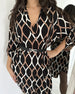 SPECIFICATIONS Style: Elegant, Business Material: Cotton Blends Dress Type: Shift dress Dress Length: Knee Length Neckline: V neck_V Pattern Type: Geometric Print Sleeve Type: Regular sleeve Sleeve Length: Long Sleeve Fit Type: Regular Season: Spring, Fall, Winter Occasion: Daily, Work Package Includes: 1 x Dress (belt not included) SIZE T...
