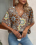 SPECIFICATIONS Top Type: Blouses Style: Vintage Material: 100% Polyester Occasion: Daily Neckline: V neck_V Pattern Type: Print Sleeve Type: Regular sleeve Sleeve Length: Half Sleeve Fit Type: Regular Season: Spring, Summer Details: Buttons Package Includes: 1 x Blouse SIZE TABLE Size Bust Length CM INCH CM INCH S 98 38.58...