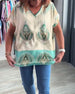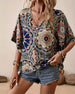 SPECIFICATIONS Top Type: Blouses Style: Boho Material: Cotton Blends Occasion: Daily,Vacation Neckline: V neck_V Pattern Type: Tribal Print Sleeve Type: Regular sleeve Sleeve Length: 3/4 Sleeve Fit Type: Regular Season: Spring,Summer Package Includes: 1 x Blouse SIZE TABLE Size Bust Length CM INCH CM INCH S 97 38.19 65 25.59 M...