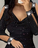 Rhinestone-Studded Fitted Off-Shoulder Dress