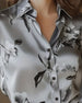 SPECIFICATIONS Top Type: Shirt Style: Chic,Business Material: Satin Occasion: Daily,Work Neckline: Shirt Collar Pattern Type: Floral Sleeve Type: Regular sleeve Sleeve Length: Long Sleeve Fit Type: Regular Season: Spring,Fall Details: Buttons Package Includes: 1 x Shirt SIZE TABLE Size Bust Length CM INCH CM INCH S 97 38.19 65 2...