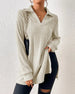 SPECIFICATIONS Top Type: Tops Style: Casual Material: Cotton Blends Occasion: Daily Neckline: Lapel Pattern Type: Solid Color Sleeve Type: Regular sleeve Sleeve Length: Long Sleeve Fit Type: Loose Season: Spring, Fall, Winter Details: Slit Package Includes: 1 x Top SIZE TABLE Size Bust Length CM INCH CM INCH S 102 40.16 68 ...