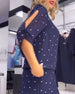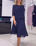 SPECIFICATIONS Style: Casual Material: A: 100% Polyester, B: 97% Polyester, 3% Spandex Dress Type: Shift dress Dress Length: Midi Neckline: Round Neck Pattern Type: Polka Dot Sleeve Type: Slit Sleeves Sleeve Length: 3/4 Sleeve Fit Type: Regular Season: Spring,Fall Occasion: Daily Package Includes: 1 x Dress SIZE TABLE Size Bust ...