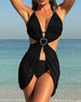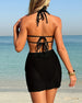 SPECIFICATIONS Style: Vacation,Elegant Material: 15% Spandex,85% Polyester Occasion: Vacation Neckline: Halter Pattern Type: Solid Color Sleeve Length: Sleeveless Top Type: Bikini Bra Type: Push Up Bottom Type: Natural Fit Type: Regular Season: Spring,Summer,Fall Details: Lace Up,Shirred,Hot Drilling Package Includes: 1 x Bikini,1 x Cover up,1...