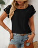 SPECIFICATIONS Top Type: Blouses Style: Casual Material: Cotton Blends Occasion: Daily Neckline: Round Neck Pattern Type: Solid Color Sleeve Type: Regular sleeve Sleeve Length: Short Sleeve Fit Type: Regular Season: Summer Details: Buttons,Hollow Out Package Includes: 1 x Blouse SIZE TABLE Size US Bust Length Sleeve CM INCH CM INC...