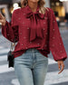 SPECIFICATIONS Top Type: Blouses Style: Elegant, Business Material: Cotton Blends Occasion: Daily, Work Neckline: Ribbon Collar Pattern Type: Solid Color Sleeve Type: Regular sleeve Sleeve Length: Long Sleeve Fit Type: Regular Season: Spring, Fall, Winter Details: Lace Up Package Includes: 1 x Blouse SIZE TABLE Size Bust Length...