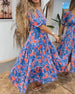 SPECIFICATIONS Style: Vacation, Elegant Material: Cotton Blends Dress Type: A-Line Dress Length: Midi Neckline: V neck_V Pattern Type: Floral Sleeve Type: Regular sleeve Sleeve Length: Short Sleeve Details: Slit Fit Type: Regular Season: Spring, Summer Occasion: Daily, Vacation Package Includes: 1 x Dress SIZE TABLE Size Bust Length C...