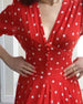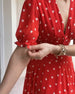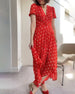SPECIFICATIONS Style: Elegant Material: Cotton Blends Dress Type: A-Line Dress Length: Maxi Neckline: V neck_V Pattern Type: Polka Dot Sleeve Type: Regular sleeve Sleeve Length: Short Sleeve Details: Slit Fit Type: Regular Season: Spring, Summer, Fall Occasion: Daily Package Includes: 1 x Dress SIZE TABLE Size Bust Length CM...