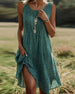 SPECIFICATIONS Style: Casual Material: Cotton Blends Dress Type: Shift dress Dress Length: Knee Length Neckline: Round Neck Pattern Type: Print Sleeve Length: Sleeveless Fit Type: Regular Season: Spring,Summer Occasion: Daily Package Includes: 1 x Dress SIZE TABLE Size Bust Length CM INCH CM INCH S 95 37.4 100 39.37 M 100 3...