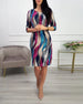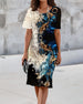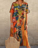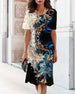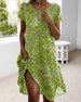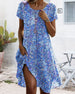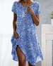 SPECIFICATIONS Style: Vacation Material: Cotton Blends Dress Type: A-Line Dress Length: Knee Length Neckline: V neck_V Pattern Type: Print Sleeve Type: Regular sleeve Sleeve Length: Half Sleeve Fit Type: Regular Season: Spring, Summer, Fall Occasion: Daily, Vacation Package Includes: 1 x Dress SIZE TABLE Size Bust Length CM INCH CM IN...